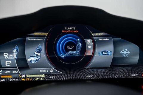 Inside, the Ferrari Sf90 Stradale is a sanctuary of luxury and technology. The Leather-Alcantara Carpets and Full Electric Seats provide comfort and style, while the Apple CarPlay integration keeps you connected on every journey. The Adaptive Front Lighting System ensures optimal visibility, and the Front Suspension Lifter offers practicality without compromising on performance.