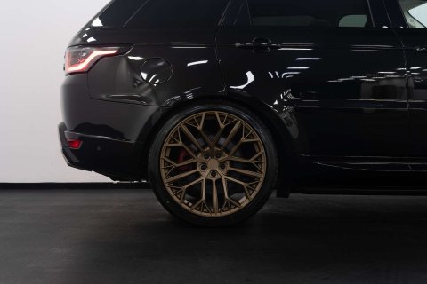 Finished in sleek Black, this Range Rover Sport stands out from the crowd. But what truly sets it apart are the extras it comes with. Equipped with upgraded 23" Riviera RV198 matte bronze alloy wheels, this vehicle exudes style and sophistication. The fixed sidesteps not only add to the aesthetic appeal but also provide practicality and convenience.