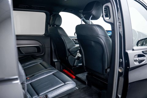 Introducing the VAT qualifying prestigious Mercedes-Benz V-Class 2.0 V300d AMG Line G-Tronic+ Euro 6 (s/s) 5dr XLWB in sleek Black finish. With only 25,000 miles on the clock and just one previous owner, this luxury vehicle exudes sophistication and class.