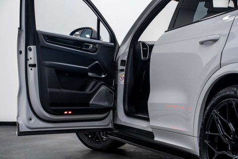 Riviera Automotive are proud to bring to market this Porsche Cayenne Turbo. The car is originally finished in black however currently wrapped in grey with black leather interior.