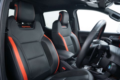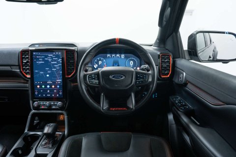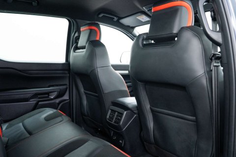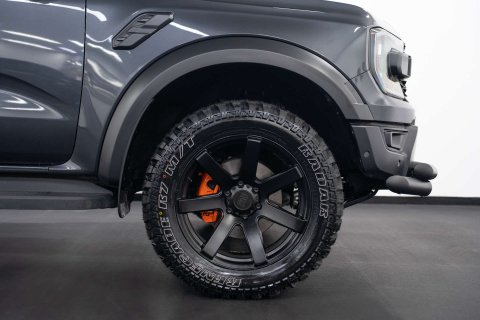 Finished in a sleek meteor grey, this Ford Ranger comes equipped with some fantastic extras, including the raptor pack with the electric roller shutter, super matte leather interior in ebony, upgraded wheels and tyres for enhanced performance, and a front bumper styling bullbar for added protection and style.
