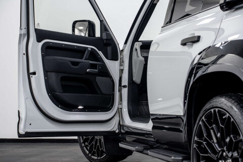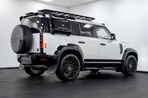Riviera Automotive are proud to bring to market this VQ Land Rover Defender 110 D250 Hard Top. The car is finished in white with black interior.