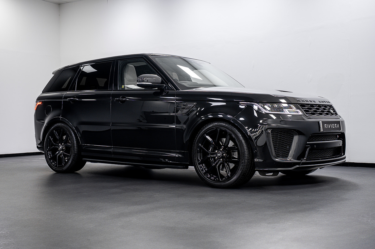 Riviera Automotive are proud to bring to market this VAT Qualifying Range Rover Sport SVR Carbon Edition. The car is finished in black with two tone leather interior.