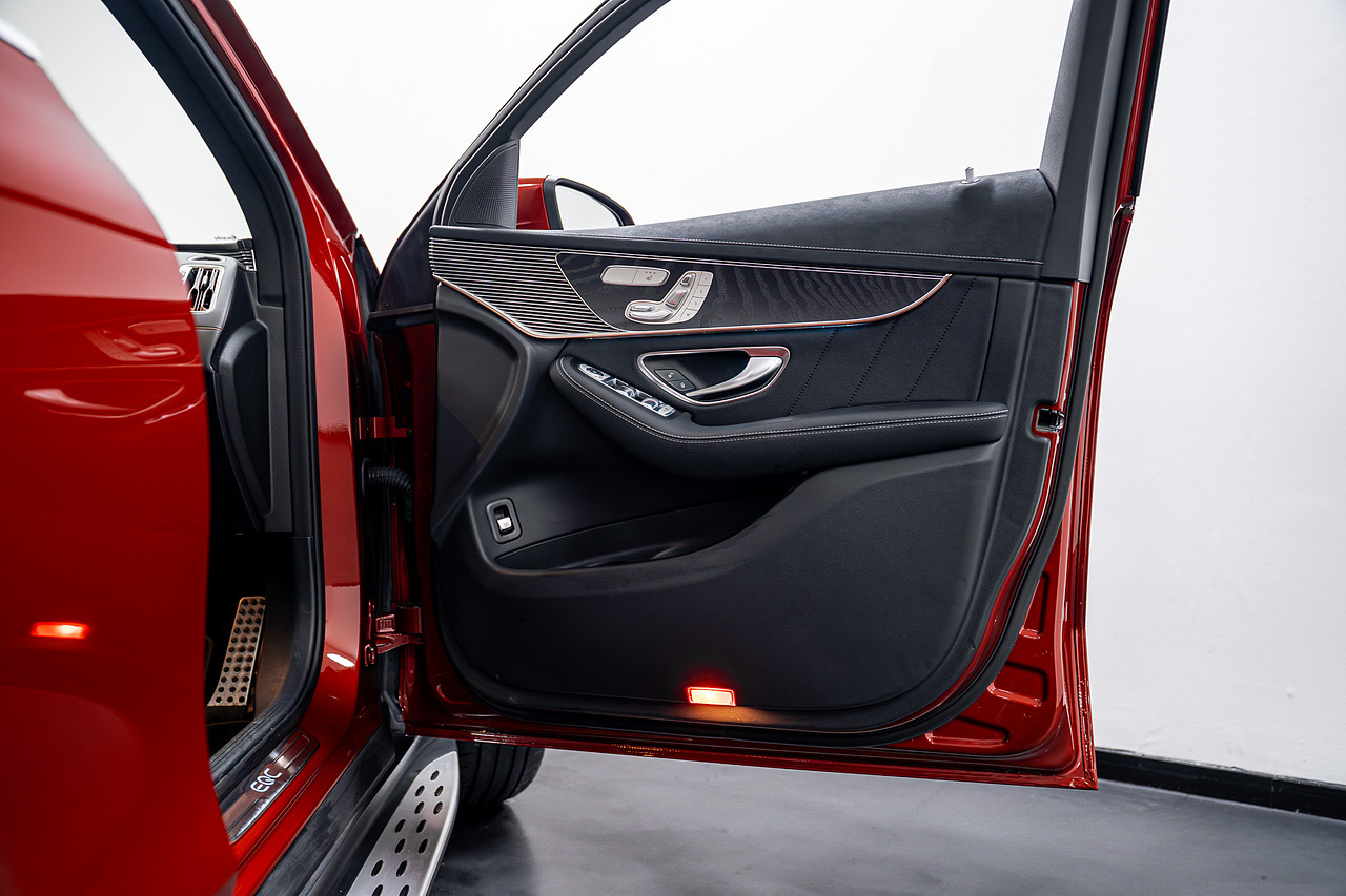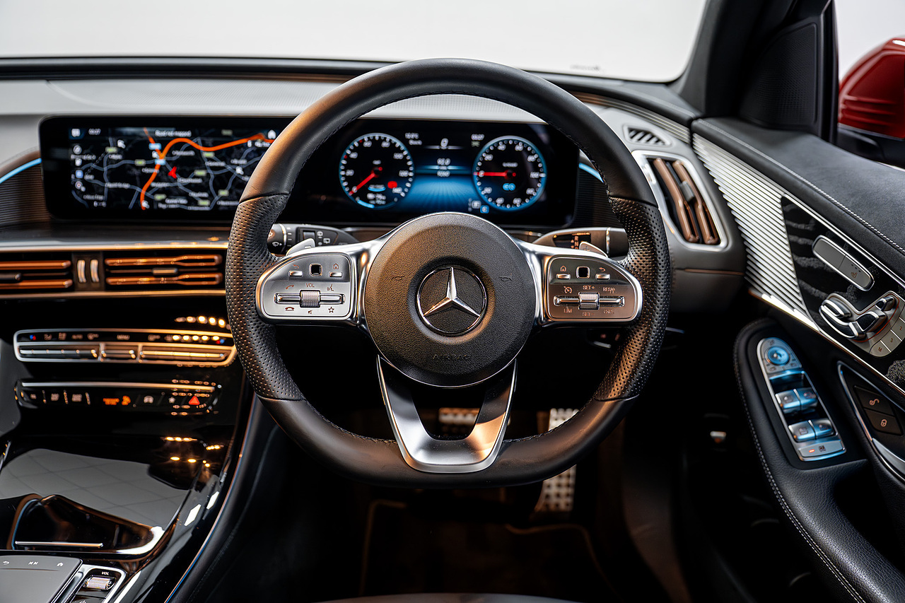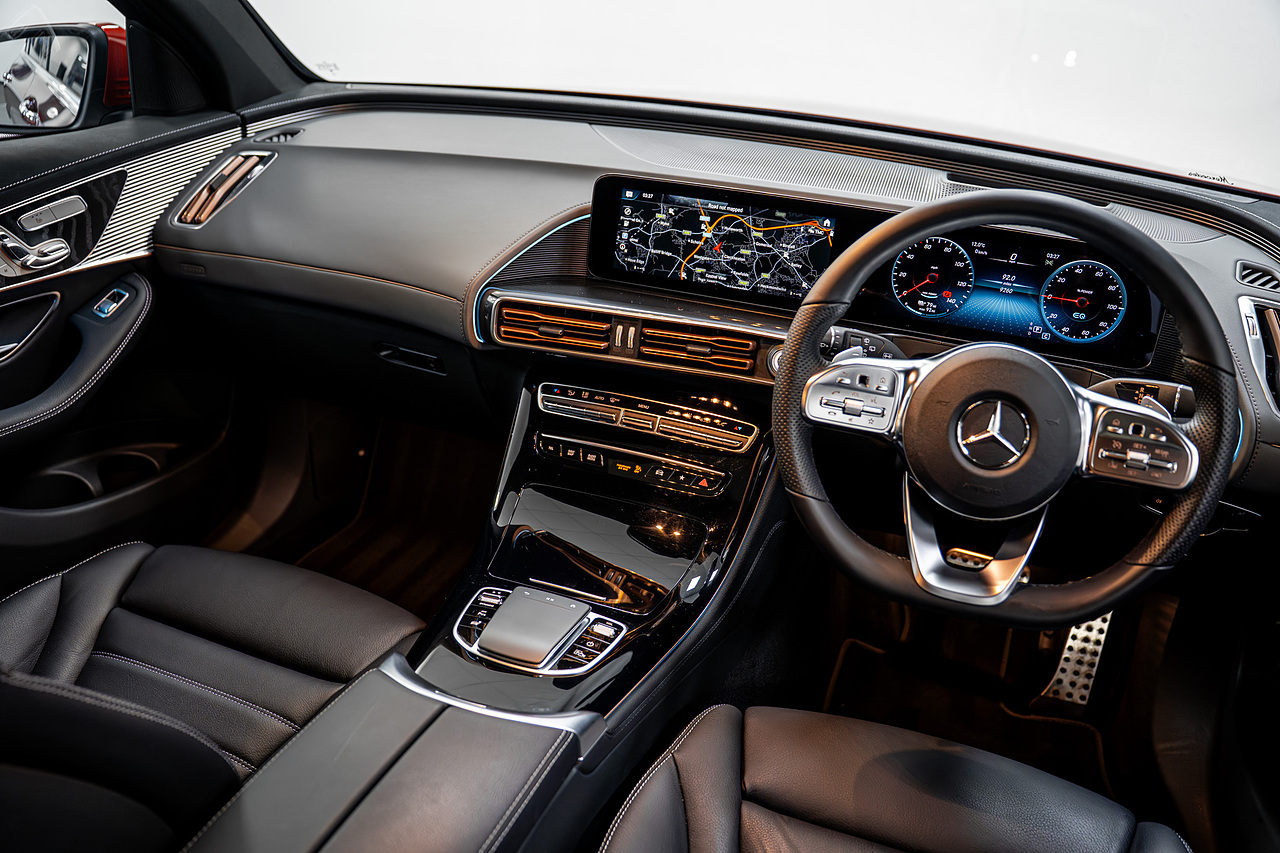 Riviera Automotive are proud to bring to market this VAT Qualifying Mercedes EQC Premium Plus. The car is finished in red with black leather interior.